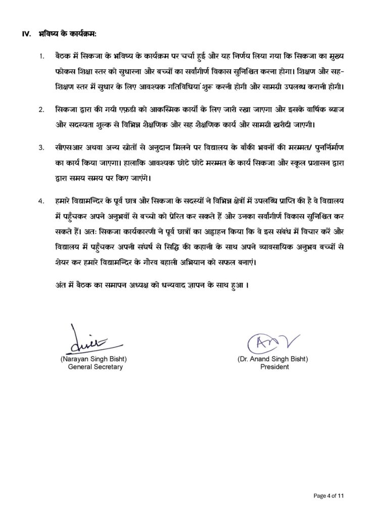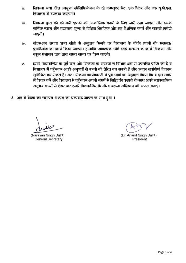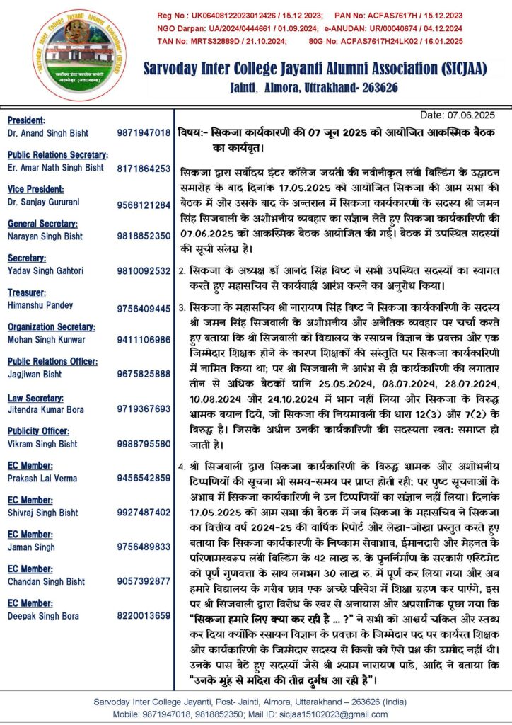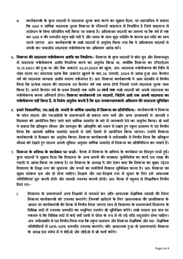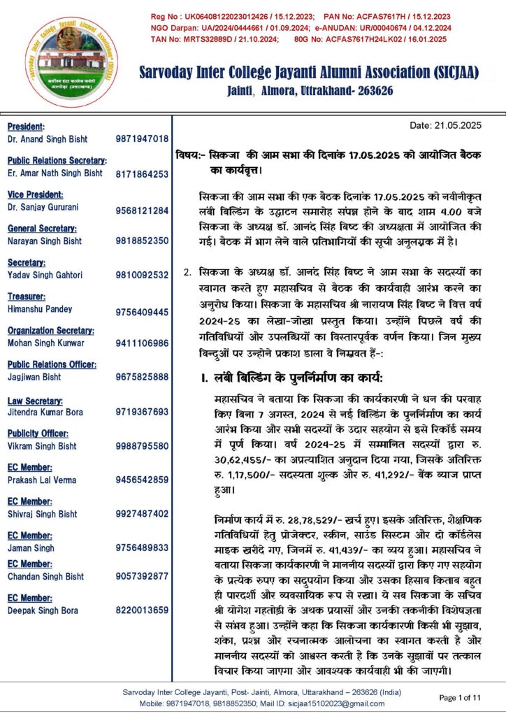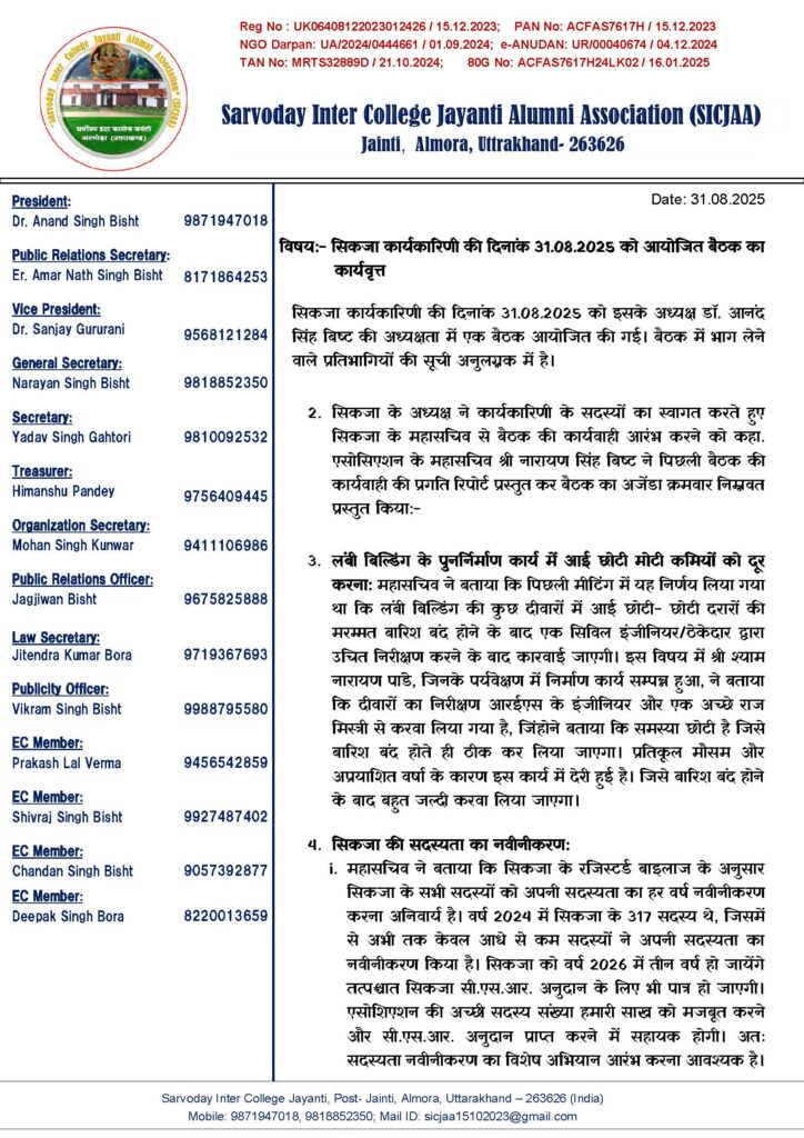 “सर्वोदय इंटर कॉलेज जयंती एलुमनाई एसोसिएशन (सिकजा) की कार्यकारणी की दिनांक 10.11.2024 की फिजिकल और 19.11.2024 को आयोजित वर्चुअल मीटिंग का कार्यवृत्त”