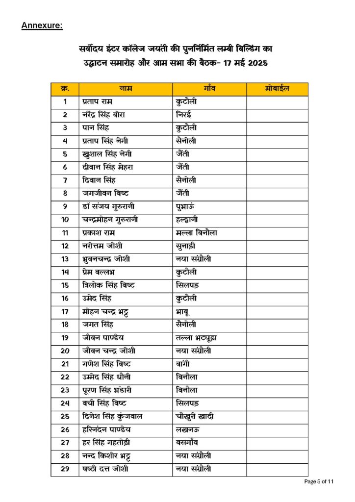 "सर्वोदय इंटर कॉलेज जयंती एलुमनाई एसोसिएशन (सिकजा) की दिनांक 08.09.2024 को आयोजित प्रथम वार्षिक आम सभा का कार्यवृत्त"