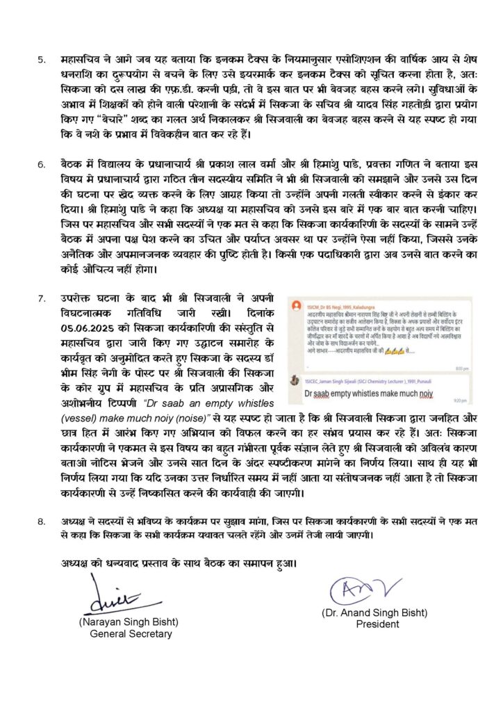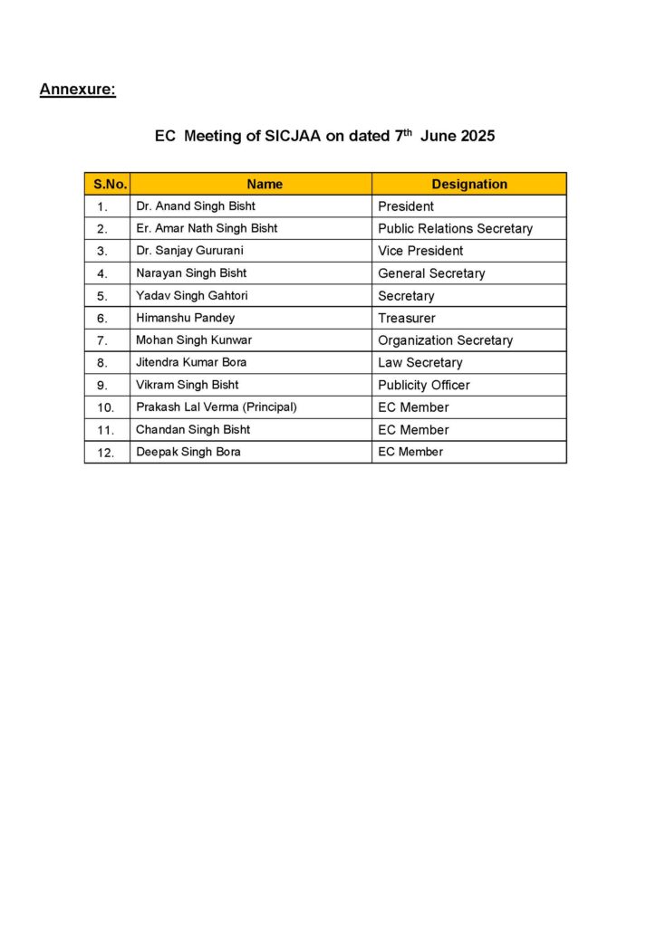 दिनांक 06.07.2024 को आयोजित सर्वोदय इंटरकॉलेज जयंती पूर्व छात्र संघ (SICJAA)की कार्यकारिणी समिति की बैठक का कार्यवृत्त।