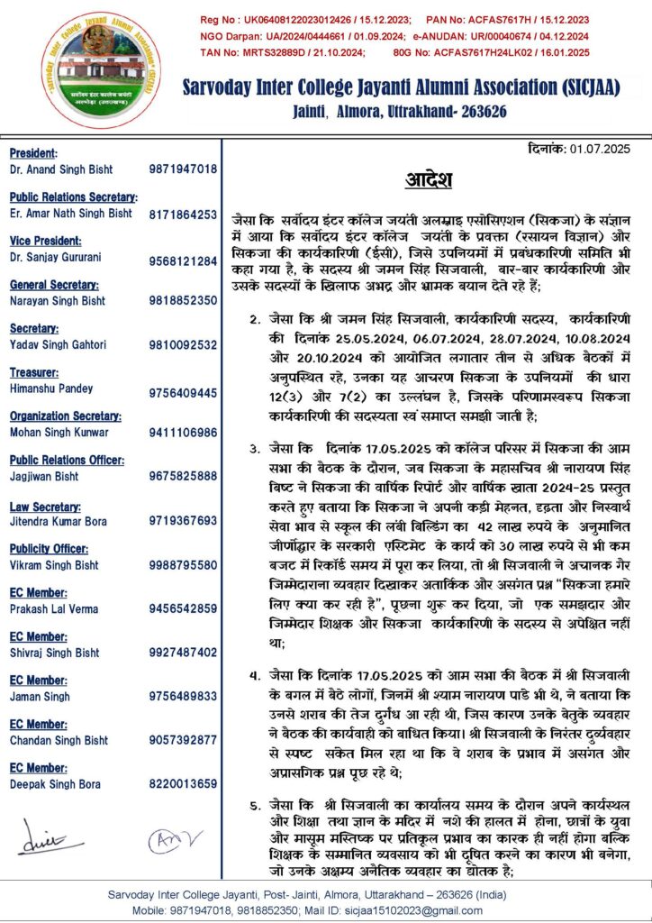 दिनांक 26 अगस्त 2024 को सर्वोदय इंटर कॉलेज, जयंती, अल्मोड़ा के