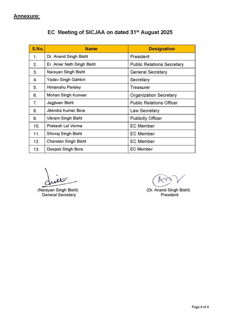 सिकजा की आम सभा की दिनांक 31 अगस्त 2025 को आयोजित बैठक का कार्यवृत्त।
